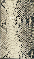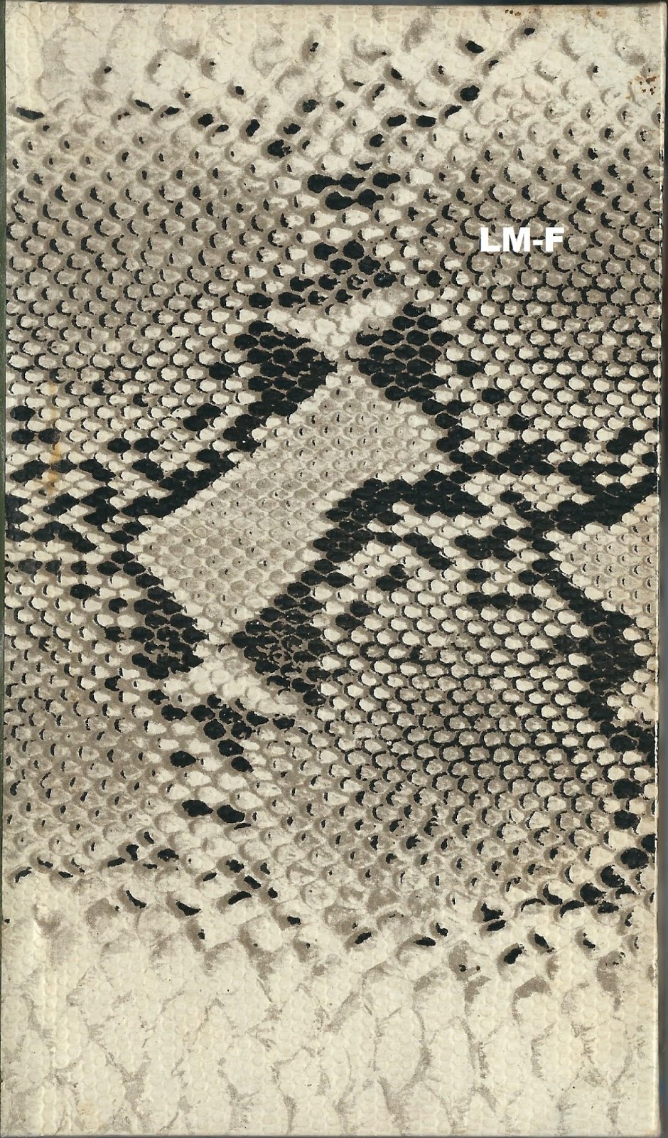 Por comparação de padrões, capas e fotos na internet, constatei grande semelhança com a pele de um ofídio, da espécie Pitão de Angola, nome científico Python anchietae, nome vulgar catumbela (Lobito). Também tentei saber se a pele de ofídios é usada, ou foi usada, na encadernação de livros, mas não encontrei referência a tal fato. Poderá ser uma experiência pontual, de alguém que esteve em Angola, caçou o animal e resolveu encadernar os livros com a sua pele. Pura especulação minha.