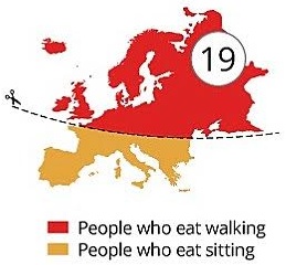 Lentamente caminhamos para o comer andando, mas por enquanto fica a constatação de um salutar hábito.